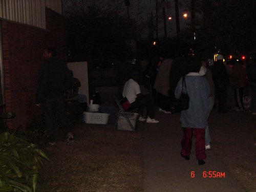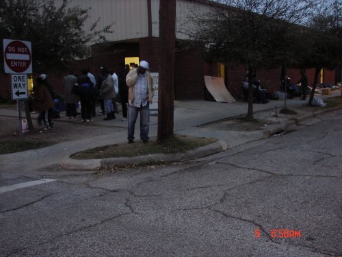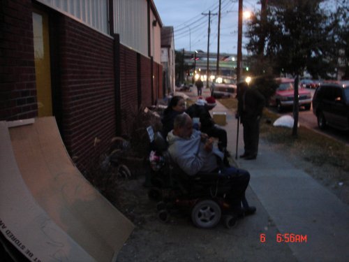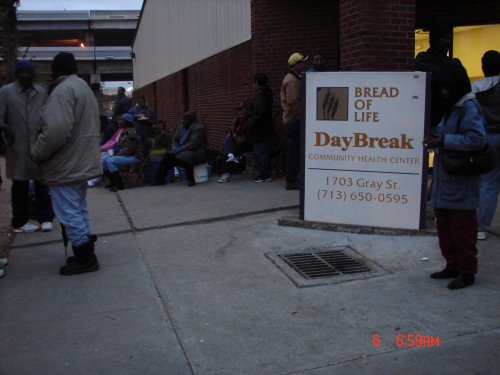 Clients start lining up for food distribution, sometimes as early as 6:30am!