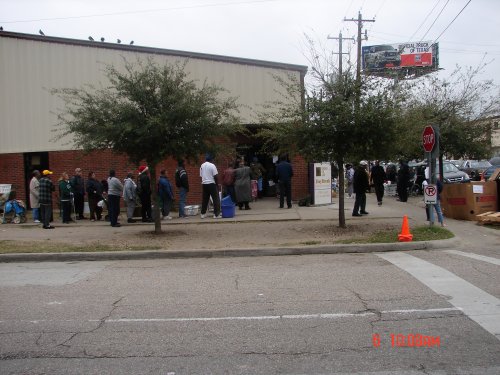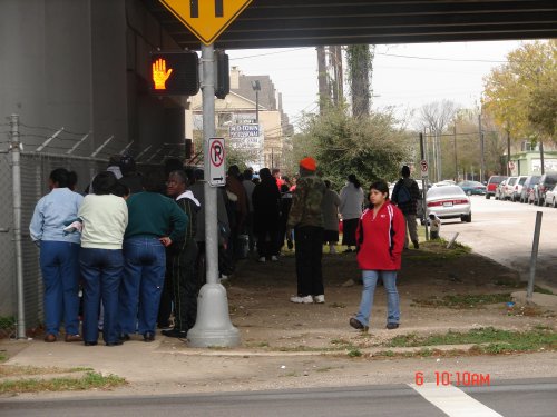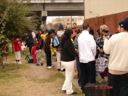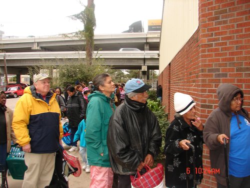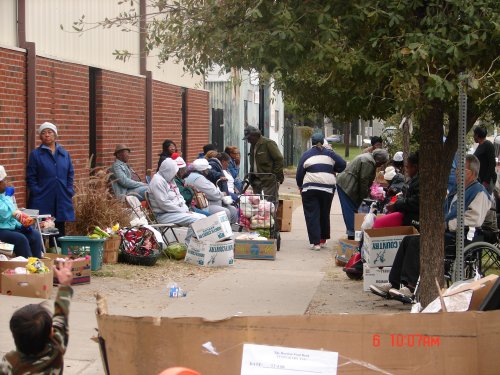 After two hours of distributing food.. the line is still a block long.